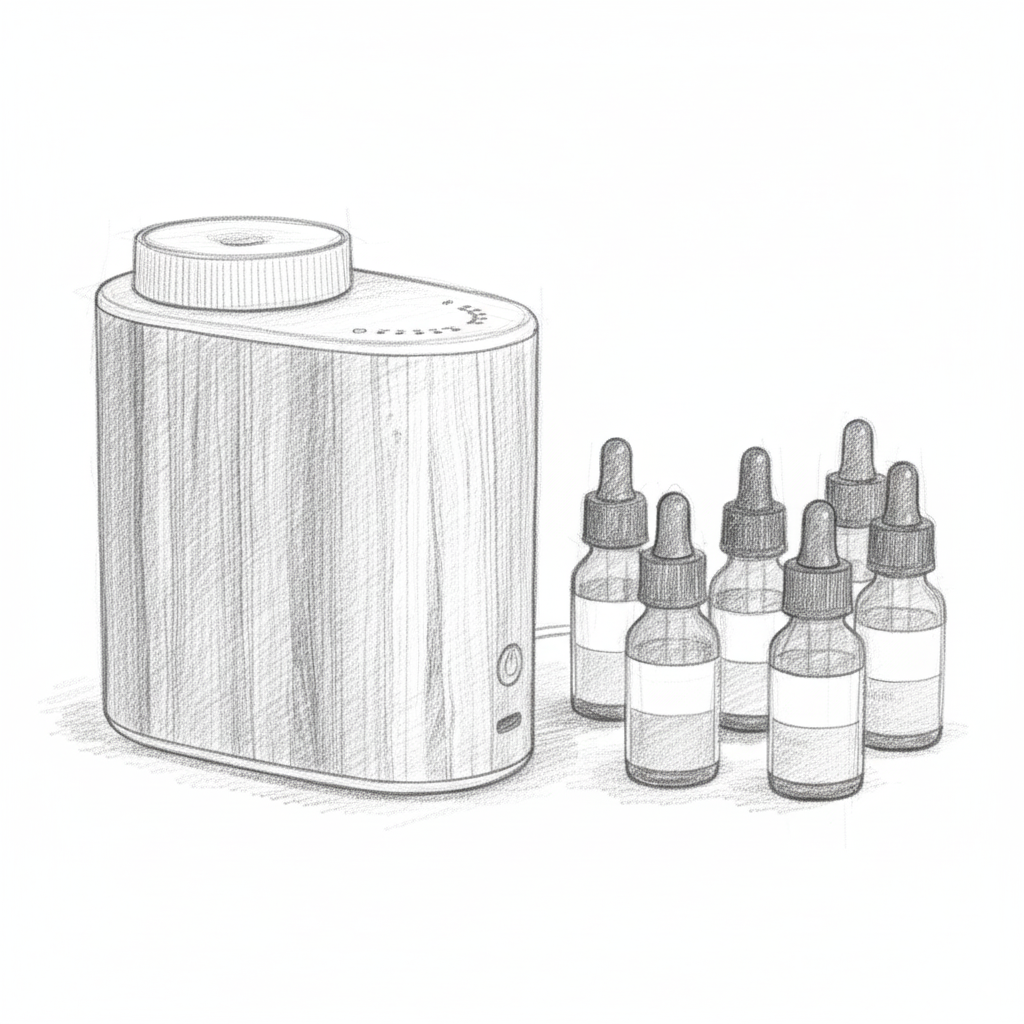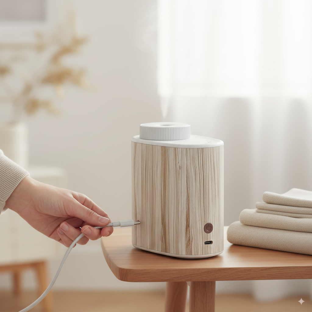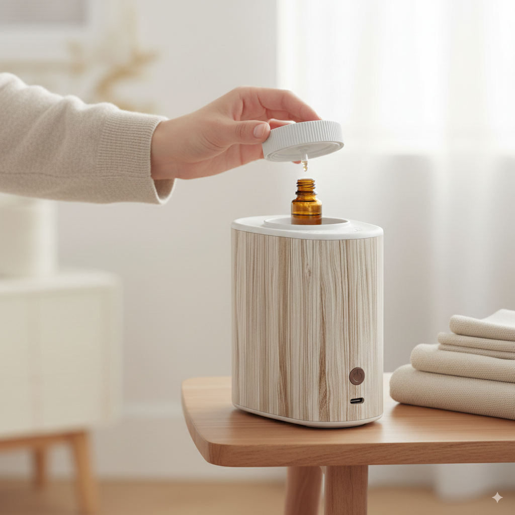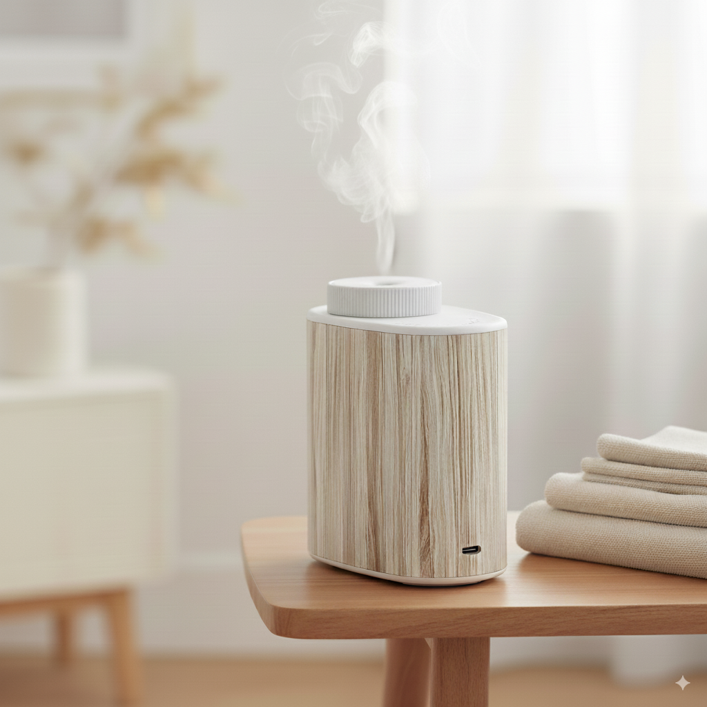 Een zachte geur die de lucht vult. Natuurlijk licht dat danst met de mist. Je ruimte verandert. Jij ook.